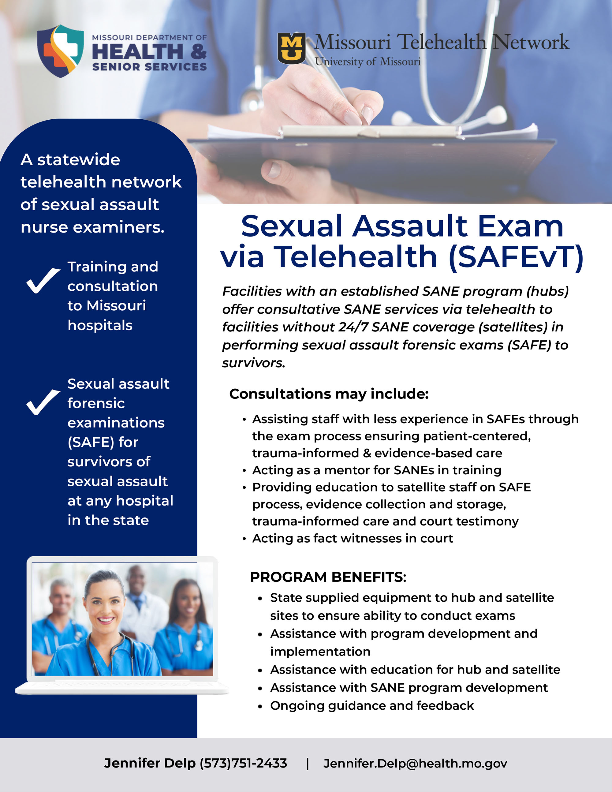 MTN and the Missouri Department of Health and Senior Services, Women’s Health Division, will create a statewide teleSANE network, virtual SANE training modules, and a SANE ECHO to increase the number of SANE nurses and to increase survivor access to necessary services.