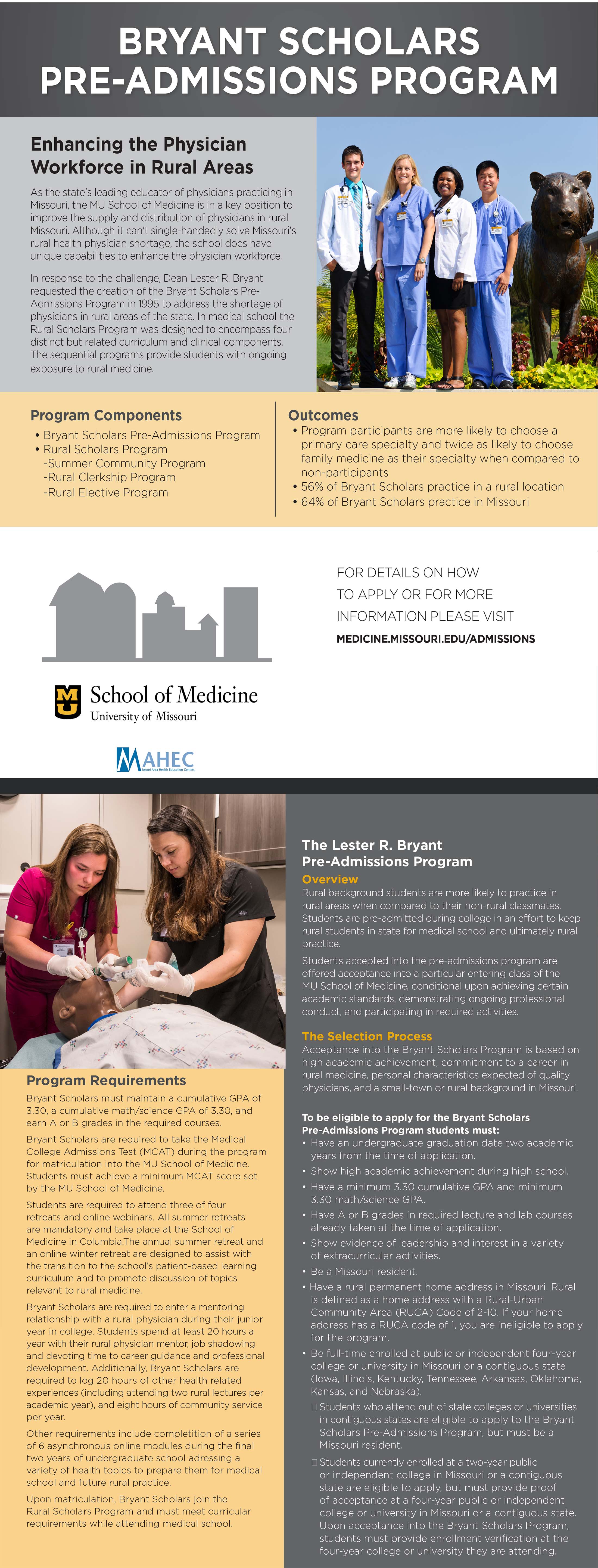 Students who matriculate to the University of Missouri School of Medicine through the Bryant Scholars Pre-Admissions Program also have curricular requirements while attending medical school.